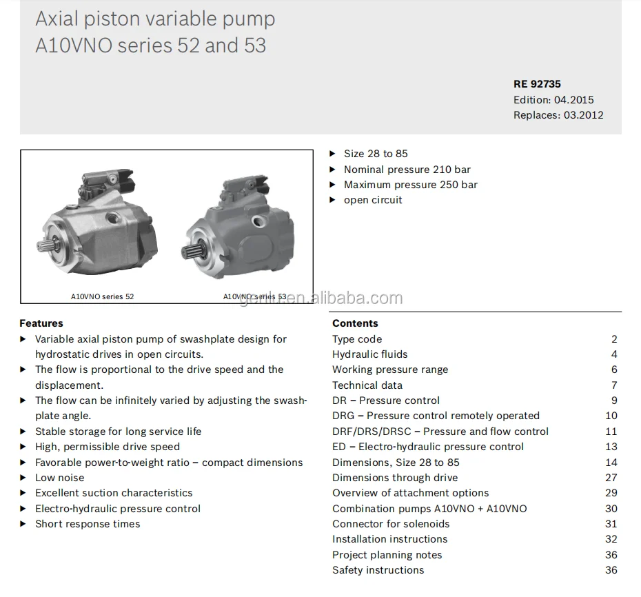 AL A10VNO45DRS/52L-VRC12H00 Hydraulic Piston Variable Displacement Pump A10VNO A10VNO28 A10VNO45 A10VNO63 A10VNO85