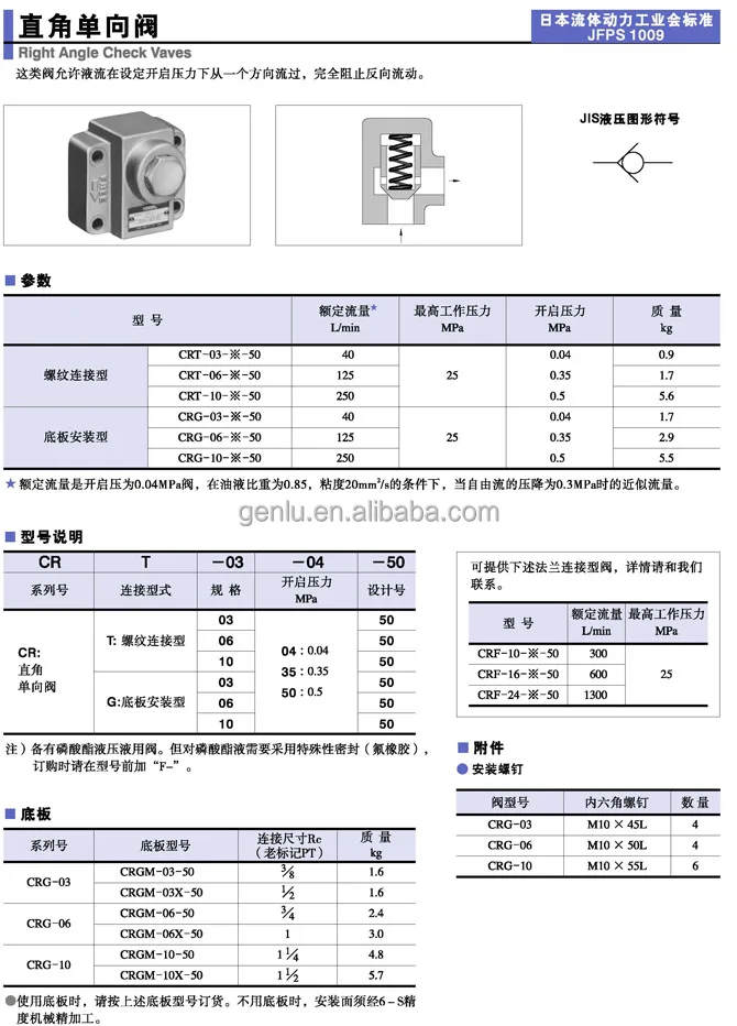 CRG-06-04-50 ANGLE CHECK VALVE CRG-03-04-50 CRG-06-05-10 CRG-10-04-50 CRG-10-04-50 CRG-10-50-50 Hydraulic Check Valve