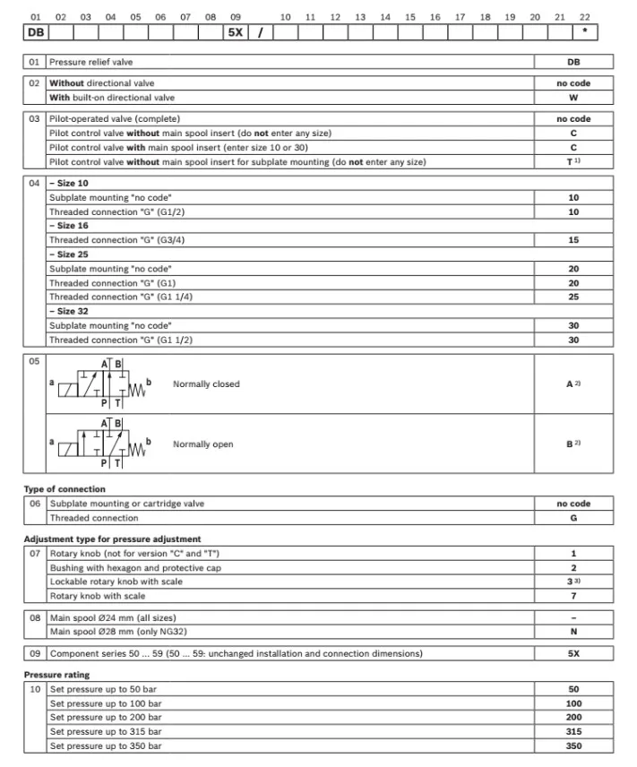 | Model Number | DB10-1-52315, DB20-2-5X/100, DB20-1-5X/315, DB20K1-1X/350Y |