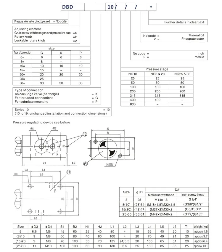 DBD Series DBDH10P/200 DBDH-6K-10/315 DBDH-10K-10/315 Direct Operated Hydraulic Relief Valve