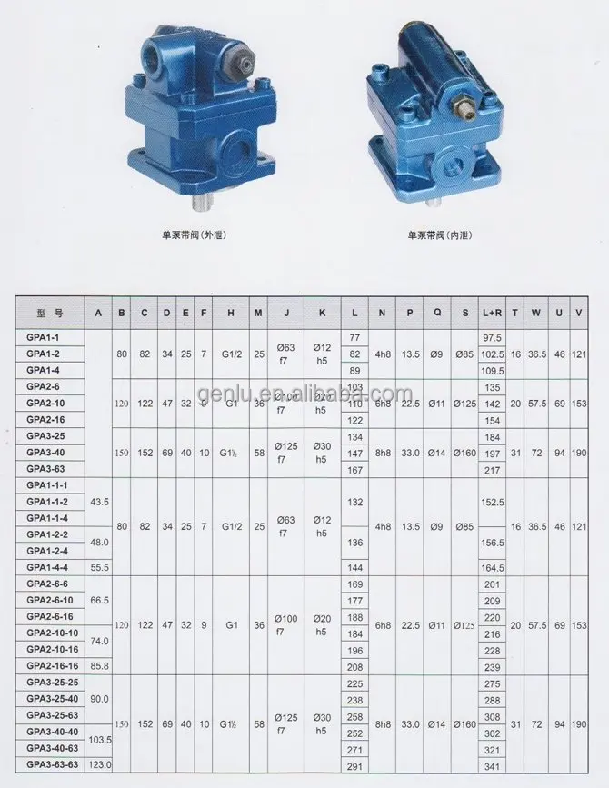 GPA GPA1-1,GPA1-2,GPA1-4,GPA2-6,GPA2-10,GPA2-16,GPA3-25,GPA3-40,GPA3-63 Internal Joggled Hydraulic Gear Pump
