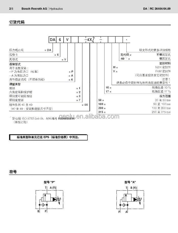 OEM hydraulic valve DA6VP2-4X/200-10 solenoid control valve DA6VP2 DA6VP1 DA6VP3 DA6VP2A DA6VP2B Pressure stop valve