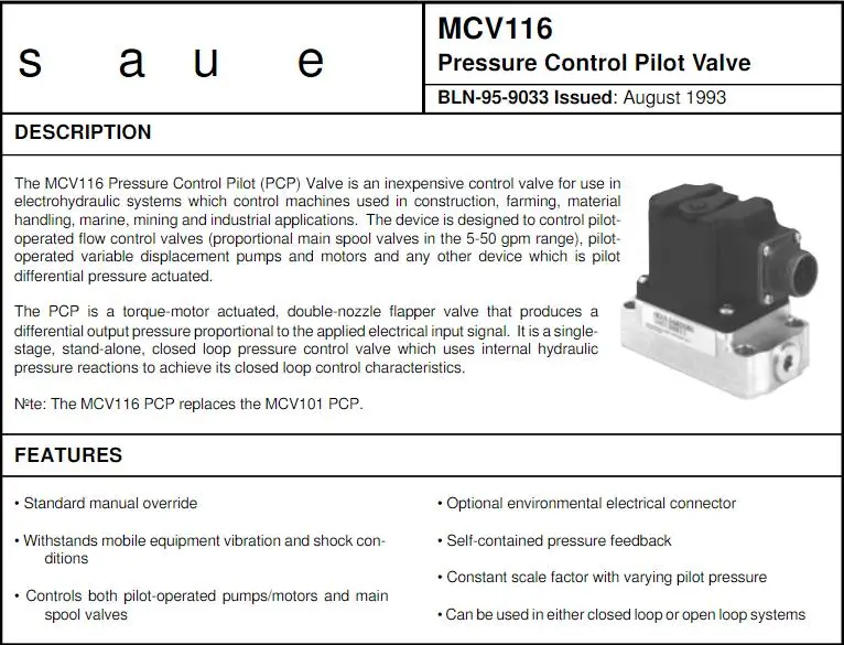 MCV MCV116 MCV116A SERIES Hydraulic Control Valve MCV116A3201