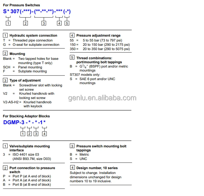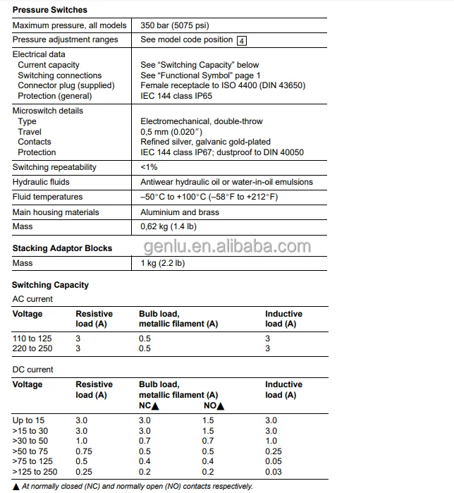 PTCV60040400 Hydraulic Pressure Switch Relay PTCV 600 Bar 40-400 Bar Ref. PTCV40020200 Ptcv60040400