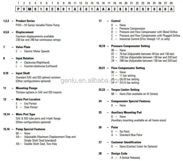 Eaton PVM of PVM018,PVM020,PVM045,PVM050,PVM057,PVM063,PVM074,PVM081,PVM098,PVM106,PVM131,PVM141