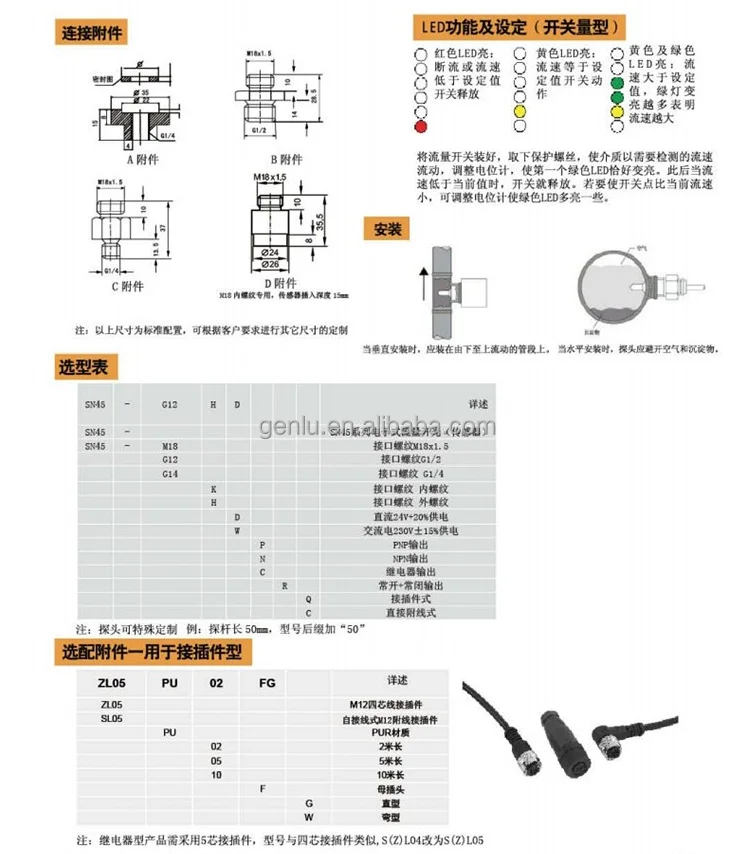 SN45 SN50 SN55 SN45-R14HDCRQ SN45-G12HDCRQ Electronic Flow Sensor Switch