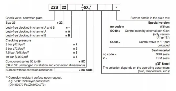 Z2S Z2FS Hydraulic Operated Check Valve Z2S10-1-20B Z2S6-1/64/V Z2FS10-5-3X/V Z2S10-2-L3X